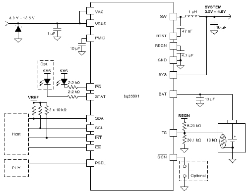 The bq25601 device is a highly-integrated 3-A switch-mode battery charge management and system power path management device for single cell Li-Ion and Li-polymer battery.