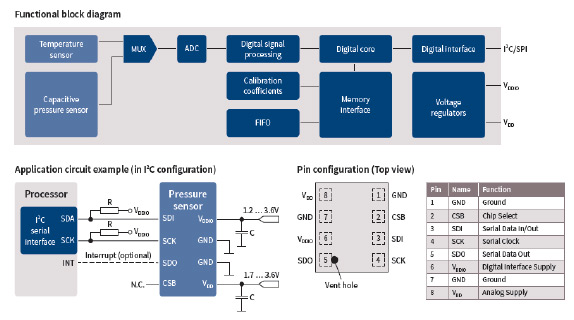 DPS310 is a digital barometric air pressure sensor featuring an ultra-high resolution, high accuracy, low energy consumption and miniature size. DPS310 is specially designed to enable enhanced navigation experience, activity level monitoring, gesture recognition and weather monitoring.