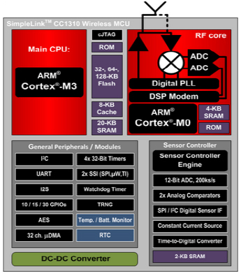 The CC1310 device is a highly integrated, true single-chip solution incorporating a complete RF system and an on-chip DC-DC converter.