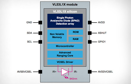 Housed in a miniature and reflowable package, it integrates a SPAD receiving array, a 940 nm invisible Class1 laser emitter, physical infrared filters, and optics to achieve the best ranging performance in various ambient lighting conditions with a range of cover window options.