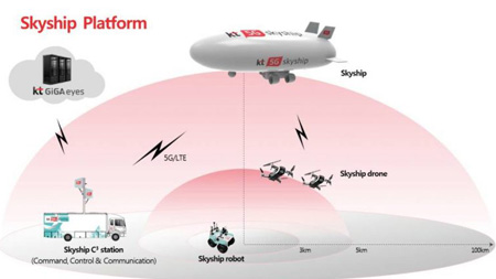 2018 年 7 月時,韓國電信公司(KT) 推出SKYSHIP平台服務。SKYSHIP平台會透過專用飛機和行動通訊中心來遠端操控無人機
