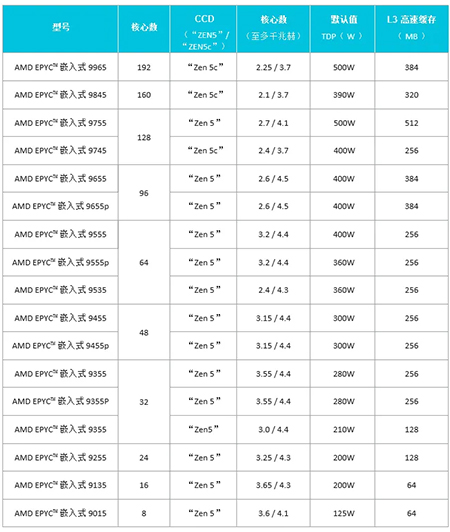 而 EPYC 嵌入式 9005 系列处理器可提供以下功能: