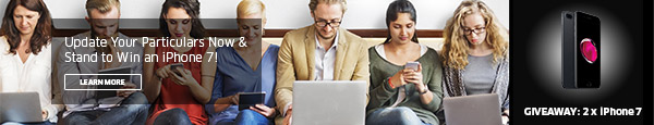 >> Update Your Particulars Now & Stand to Win an iPhone 7!