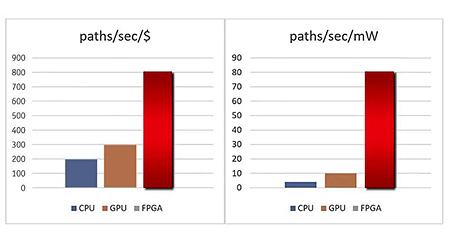 採用 FPGA 加速的衍生品定價與風險模型能以少量能耗實現顯著的性能加速(通常與支持 GPU 的模型相比較),降低功耗與散熱成本。此外,FPGA 也提供確定性時延,不存在抖動和可預測的反應時間,從而減少性能變化。